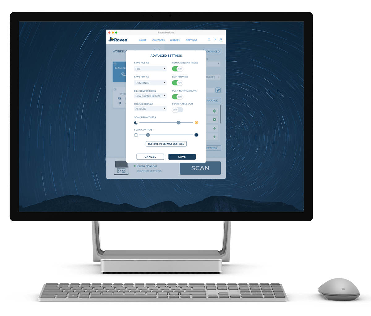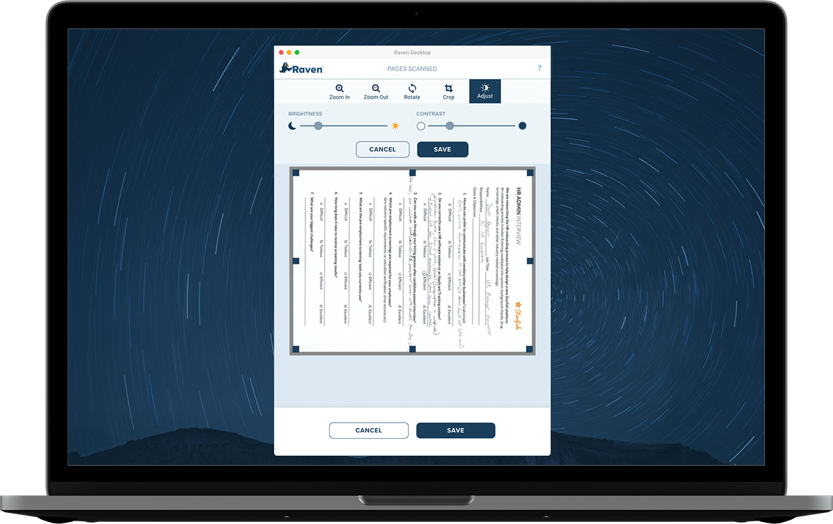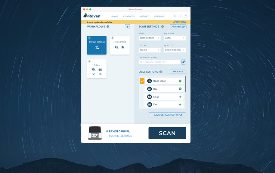 Raven Desktop provides a simple and intuitive scanning application for scanning to documents your Windows PC, Mac or favorite cloud destinations with any Raven Scanner.